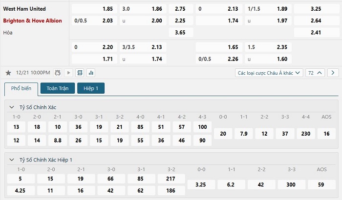 Soi kèo tỷ số West Ham United vs Brighton