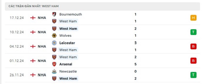 - Phong độ West Ham United