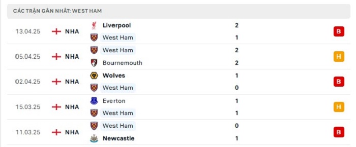 - Dự đoán tỉ số trận đấuWest Ham United vs Southampton