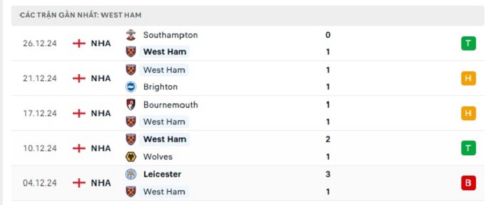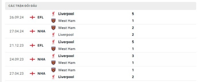 Bảng  bóng đá trận đấu West Ham vs Liverpool