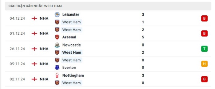• Phong độ West Ham