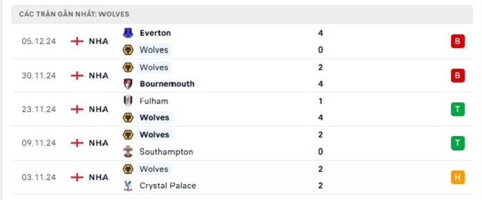 • Phong độ Wolves