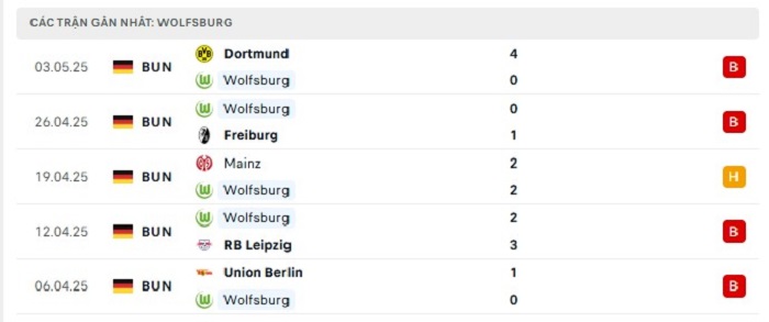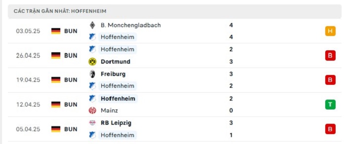 Phong độ gần đây Wolfsburg vs Hoffenheim